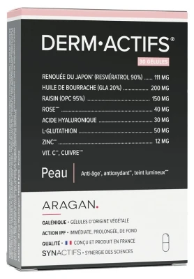 Aragan Synactifs DermActifs 30 Capsules is a dietary supplement with 360° action that helps :