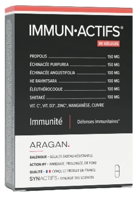 Aragan Synactifs ImmunActifs 30 Capsules is a dietary supplement with 360° action that helps :