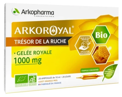 Arkopharma Arko Royal Hive Treasure Organic Royal Jelly 1000mg 20 Phials is a food supplement, certified organic, in form of drinkable phials based of royal jelly.