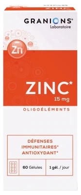 Granions Zinc Gluconate 15mg 60 Capsules is a food supplement based on zinc, a trace-element essential to the proper functioning of the body: