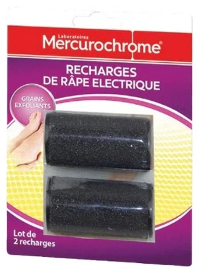 Mercurochrome Electric Rasp Refills Exfoliating Grains Set of 2 Refills are refill rollers for the Mercurochrome. They quickly and easily remove calluses, dead skin and smooth skin for beautiful, well-groomed feet.