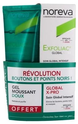 Noreva Exfoliac Global X-Pro Intensive Global Care 30 ml + Gentle Foaming Gel 100 ml Free is a hygiene and skincare set, revolutionizing pimples and blackheads.