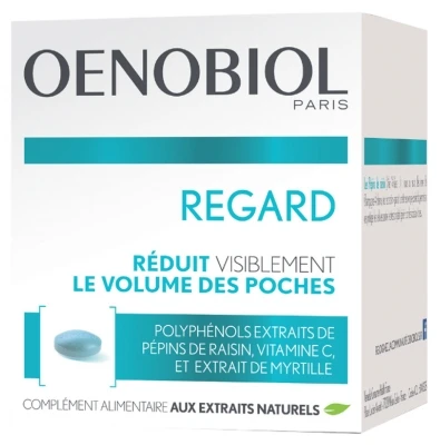 Oenobiol Regard 60 Tablets is a food supplement with a specific formula composed of plant polyphenols extracted from grape seeds, blueberry extract and vitamin C, to help visibly reduce the volume of puffiness from the 14th day.