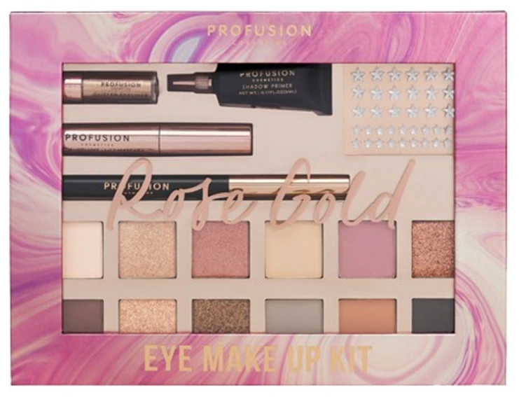 Profusion Cosmetics Rose Gold Eye Makeup Set is a set of eye makeup essentials. It contains: