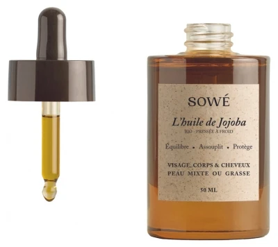 Sowé Pure Organic Jojoba Oil 50 ml is a balancing, softening and protective treatment for combination to oily skin. It can be used on the face, body and hair.