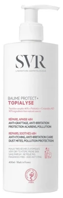 SVR Topialyse Protect+ Balm 400ml is an anti-itching, anti-irritation face and body balm intended for very dry to atopic skin of the whole family from birth (excluding premature babies).